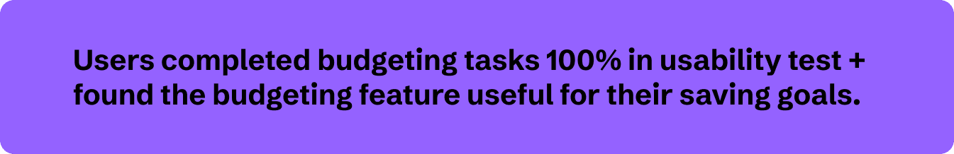 What I tested: 5 moderated testing sessions using high-fidelity prototype. Users were asked to conduct the following tasks: Adjust category budge, Apply AI recommendation, Transfer budget saving surplus to Goal/Vault.