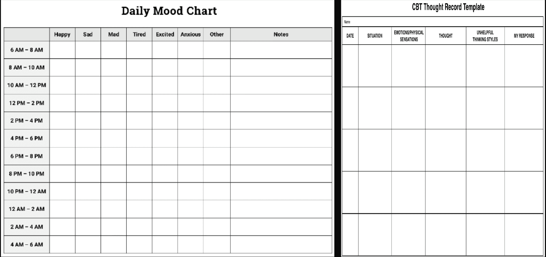 Figure 1 and 2: Examples of self-monitoring forms adopted by therapist for the CBT patient